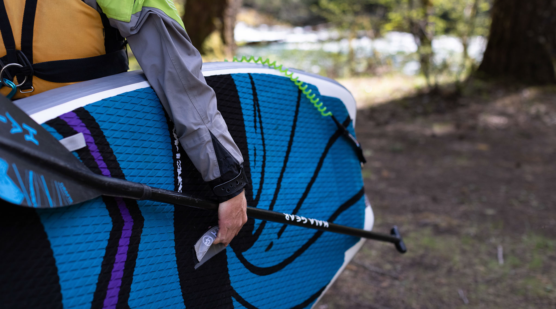 Hala Gear river cruising boards come with an adjustable travel paddle.
