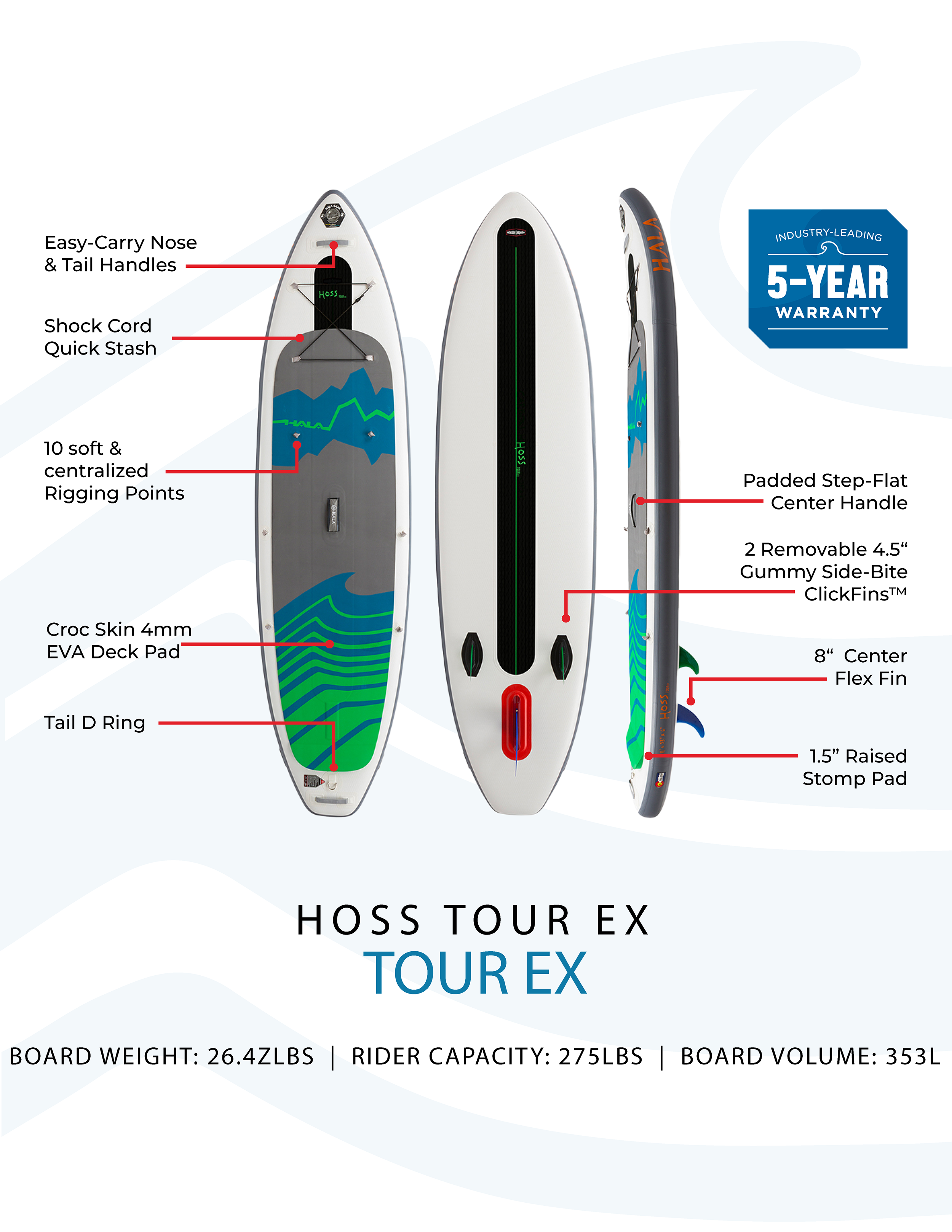The Hoss Tour Ex is the boss for tackling big adventures! This is a larger and stable board with the glide and responsiveness of a smaller board. Rigid and ready to provide a smooth glide and a great time!