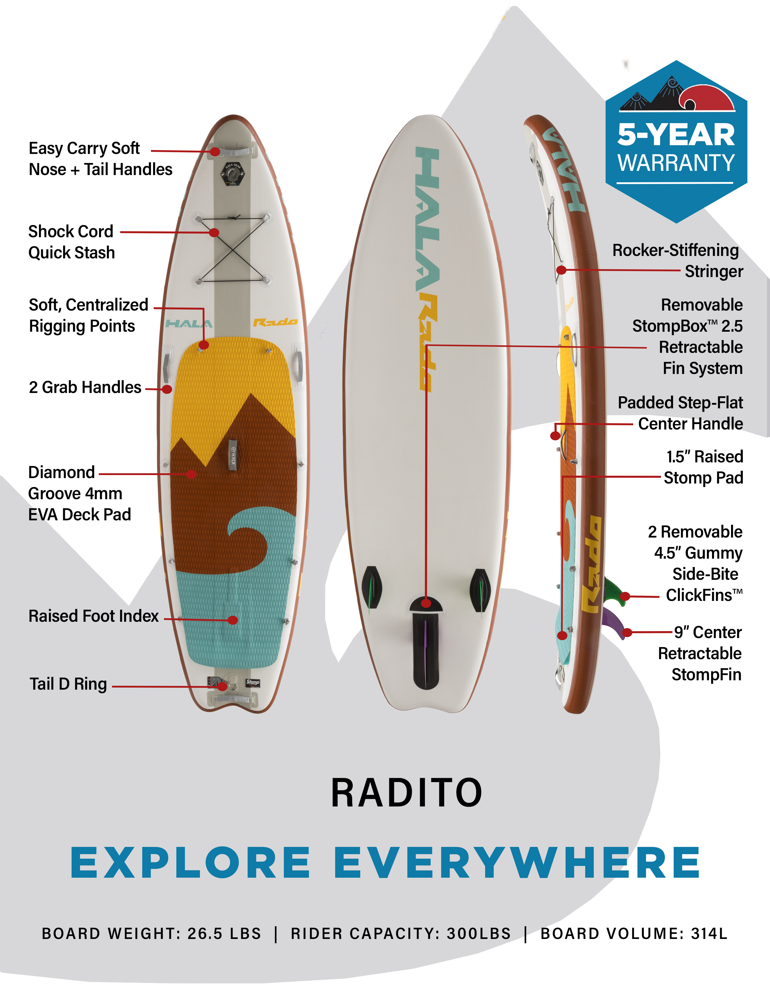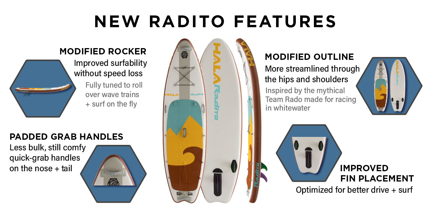The Sporty River and Expedition SUP. The Hala Radito is designed for paddlers who demand nimble, high-performance in both whitewater and flatwater. It's also amazing for smaller paddlers looking for a capable yet playful board.